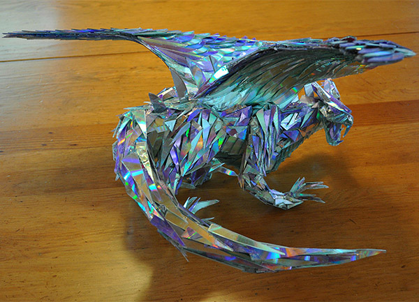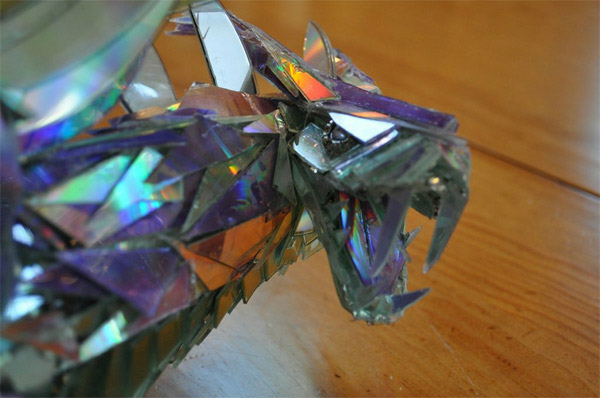 Absolutamente tudo pode se tornar material de construção quando a criatividade não tem limites e o ainda desconhecido construtor desse dragão teve uma ideia literalmente brilhante ao fazê-lo completamente de pedaços de CDs.